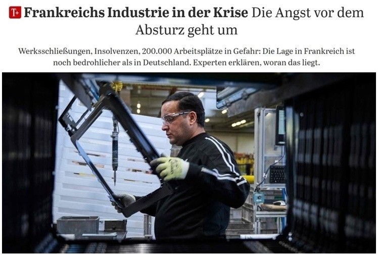 文章称,法国工业增加值多年来一直在下滑,而专家认为,法国的情况在2025年不会好转。