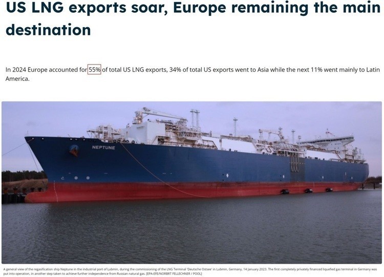 除了依靠极不稳定的风电等可再生能源外,欧盟多数国家只能从美国、卡塔尔等国购买液化天然气,美国也由此成了欧盟最大的液化天然气供应国。