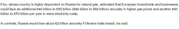 斯洛伐克总理菲佐估计,乌方“关闸”对欧洲的伤害将远大于对俄罗斯的伤害:欧洲家庭和企业每年可能面临400亿至500亿欧元的天然气价格上涨,以及600亿至700亿欧元的额外电力成本。