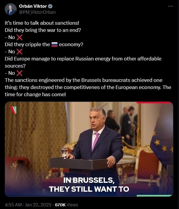 匈牙利总理欧尔班日前在社交媒体上表示,匈牙利和欧洲都需要价格低廉的能源,而欧盟对俄罗斯的制裁措施“正在摧毁欧洲经济”。
